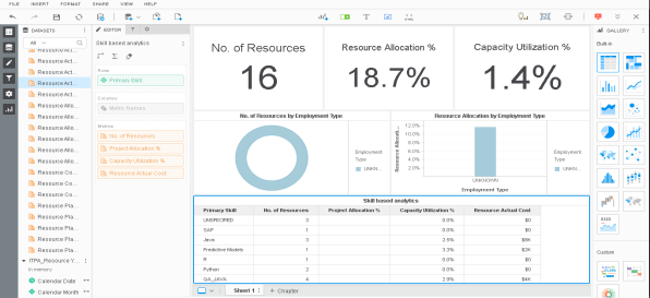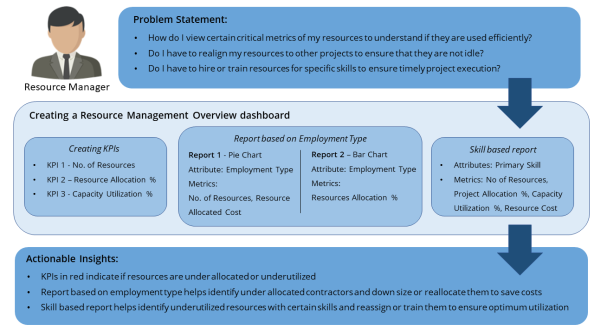 As a resource manager, Tom would want a dashboard that will enable him to analyze and keep track of his resources, their allocation, and utilization to ensure effective use of resources.