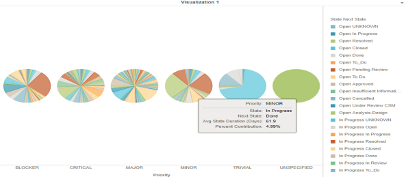 Julie is a Team Leader who is managing multiple teams working on multiple projects. As a Team Leader, she wants to analyze the time taken by major or critical priority work items to move from ‘In Progress’ state to ‘Resolved’, 'Closed', or 'Done' states. She wants to understand the time lapse between the previous and next states because it is critical for high priority work items to be resolved at the earliest. Analyzing the state changes can help her to: